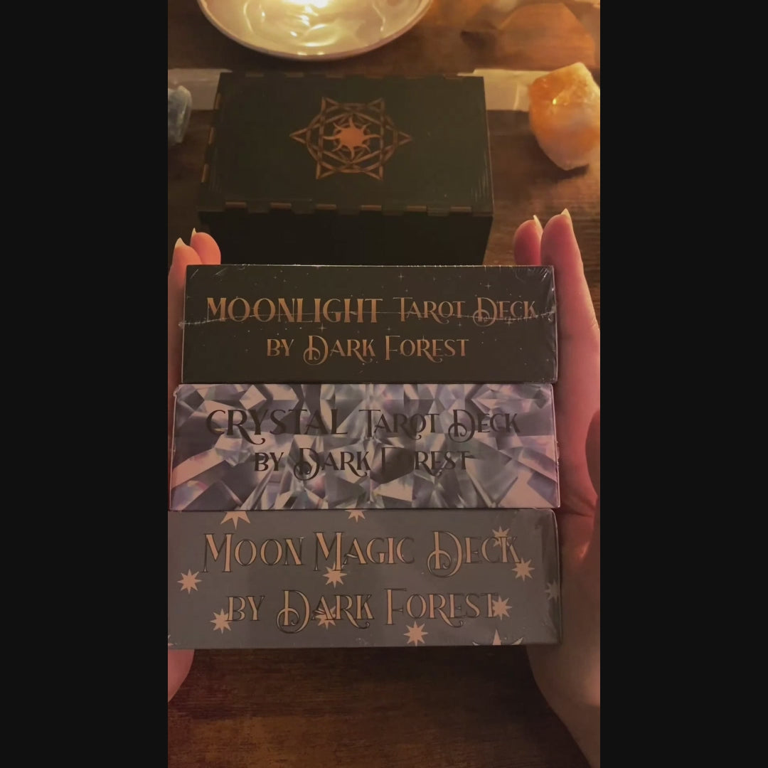 • 🪵 Wooden Tarot Box – 5" x 3.5" x 2" (13.6 x 9.2 x 5 cm)