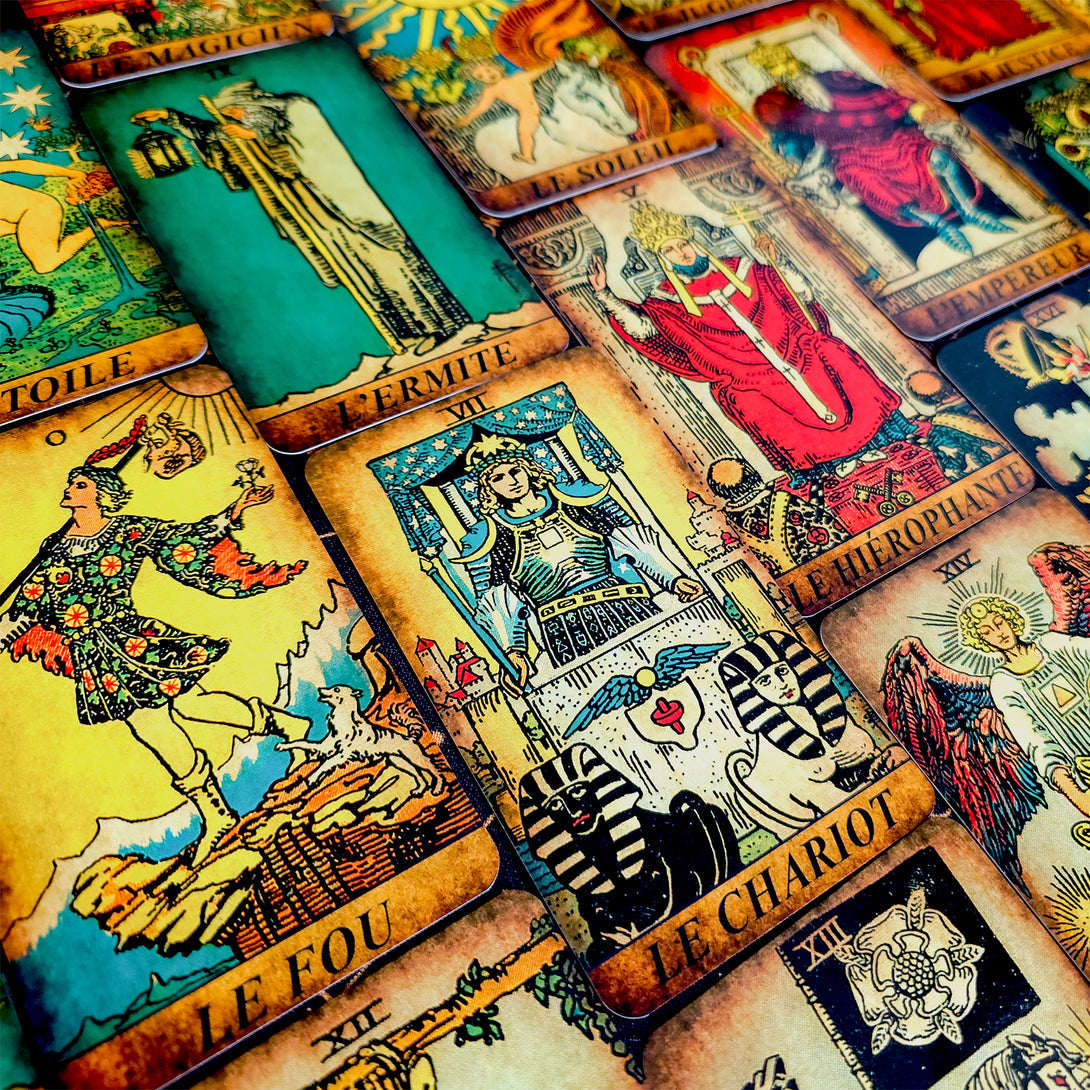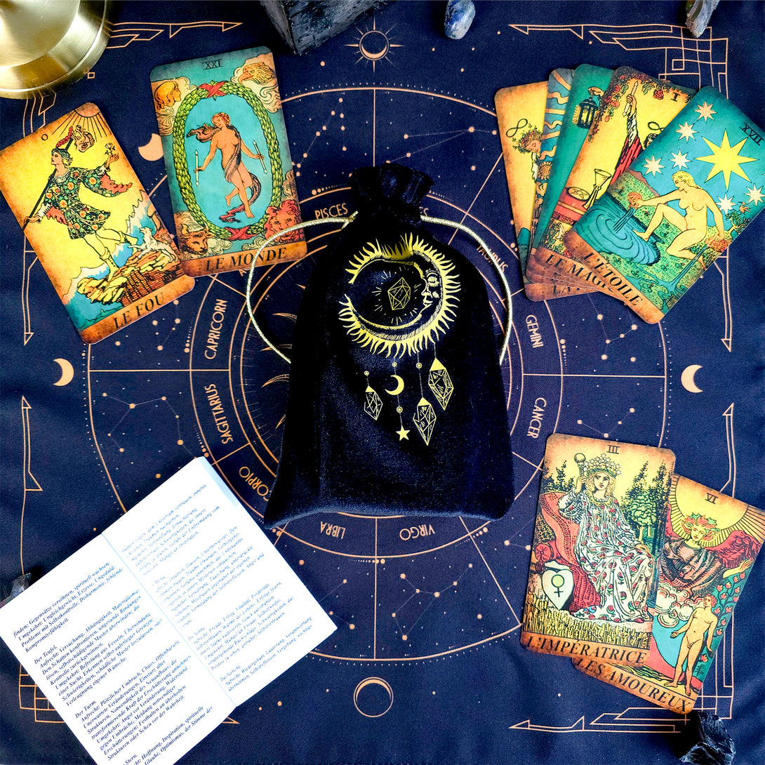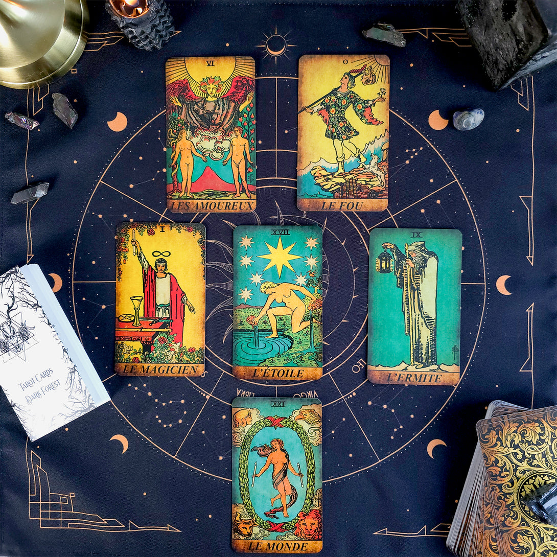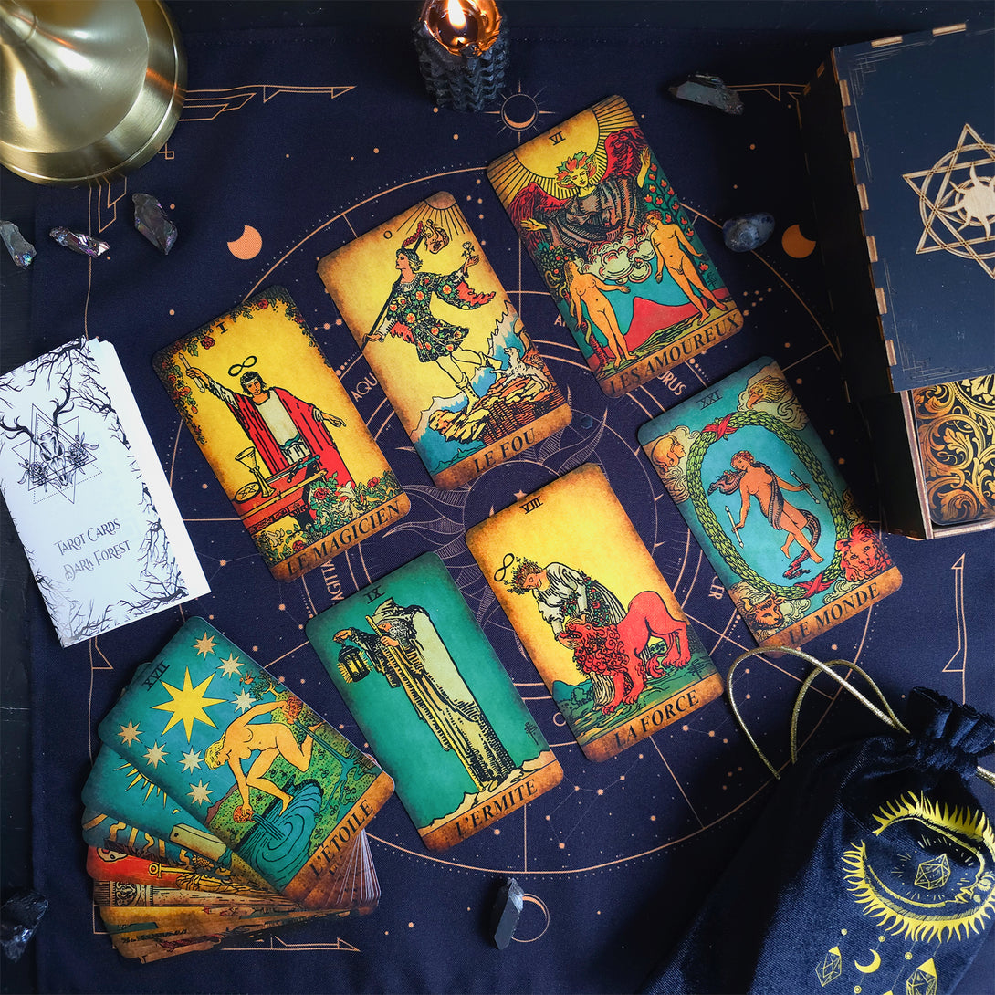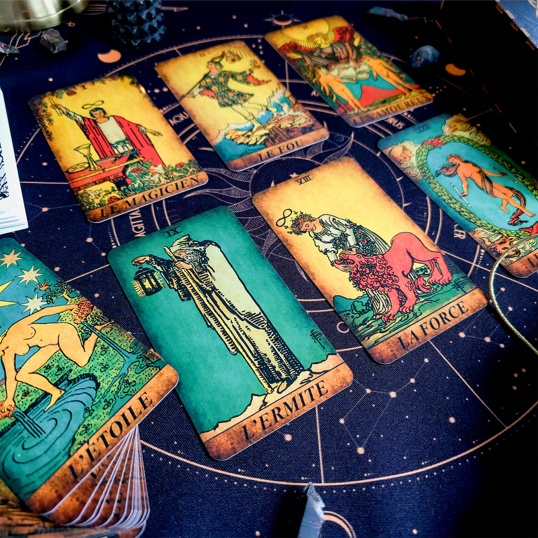 - Full 78-Card Deck (French Text): 22 Major Arcana & 56 Minor Arcana.